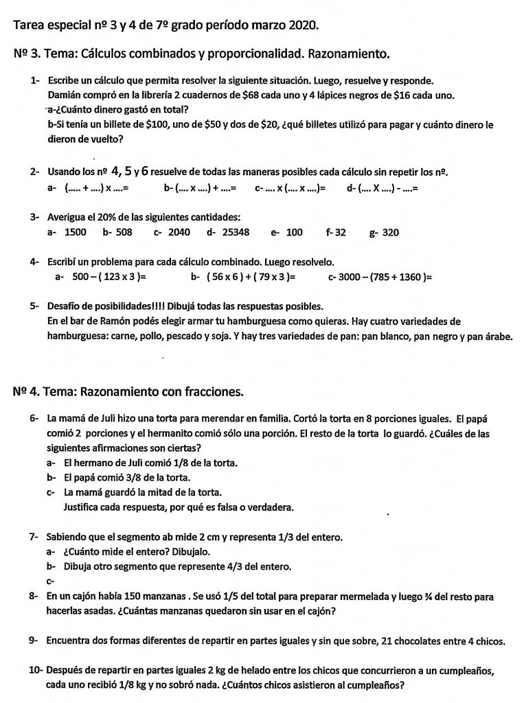 Actividades de Matemática 7º grado abril 2020. Seño Andrea